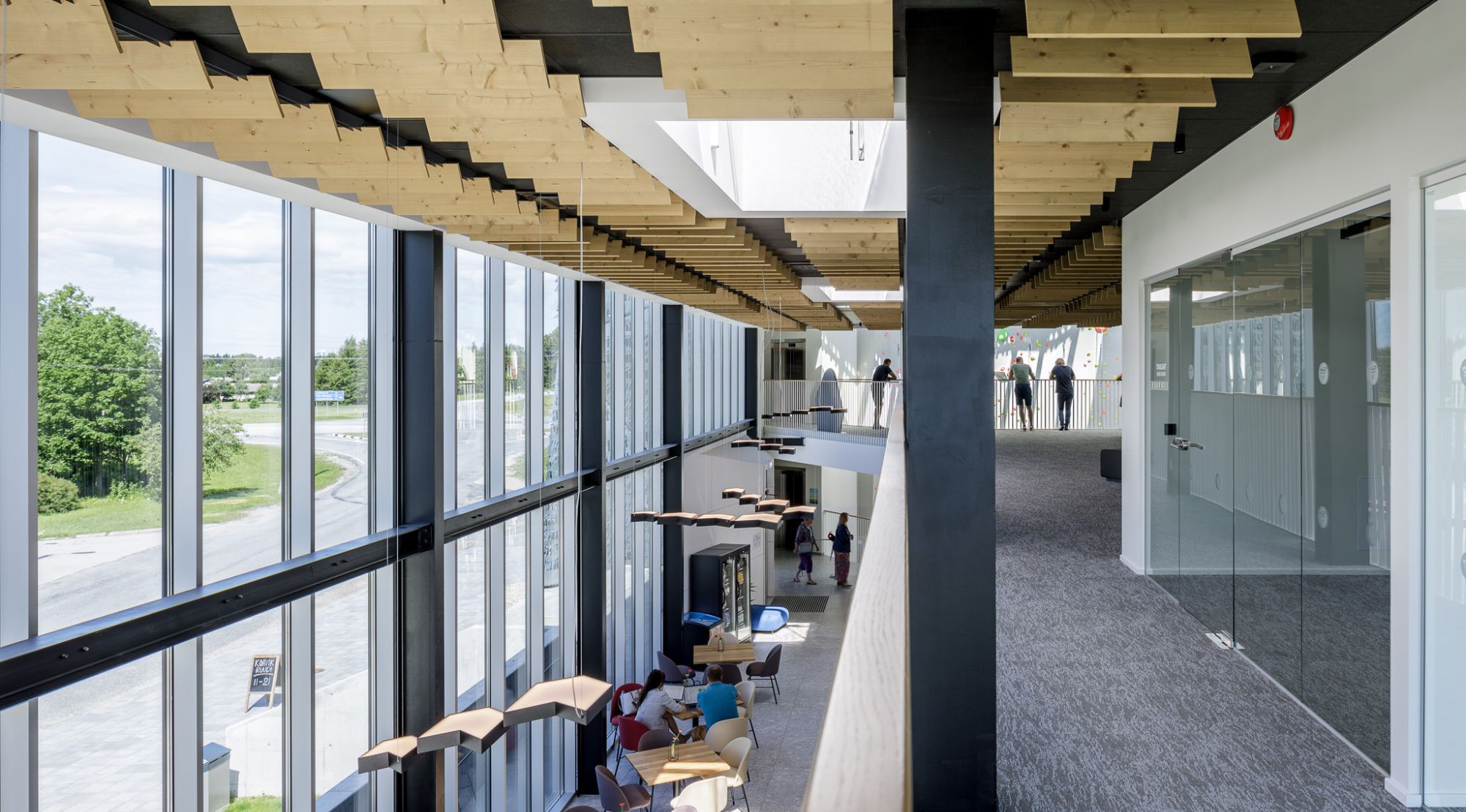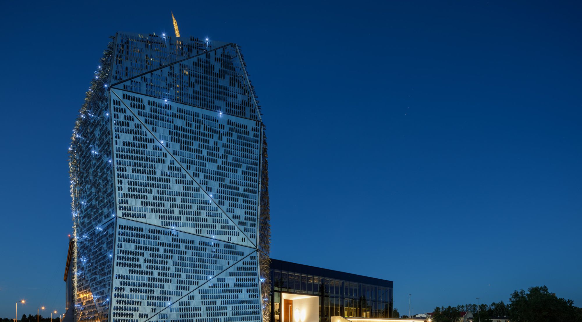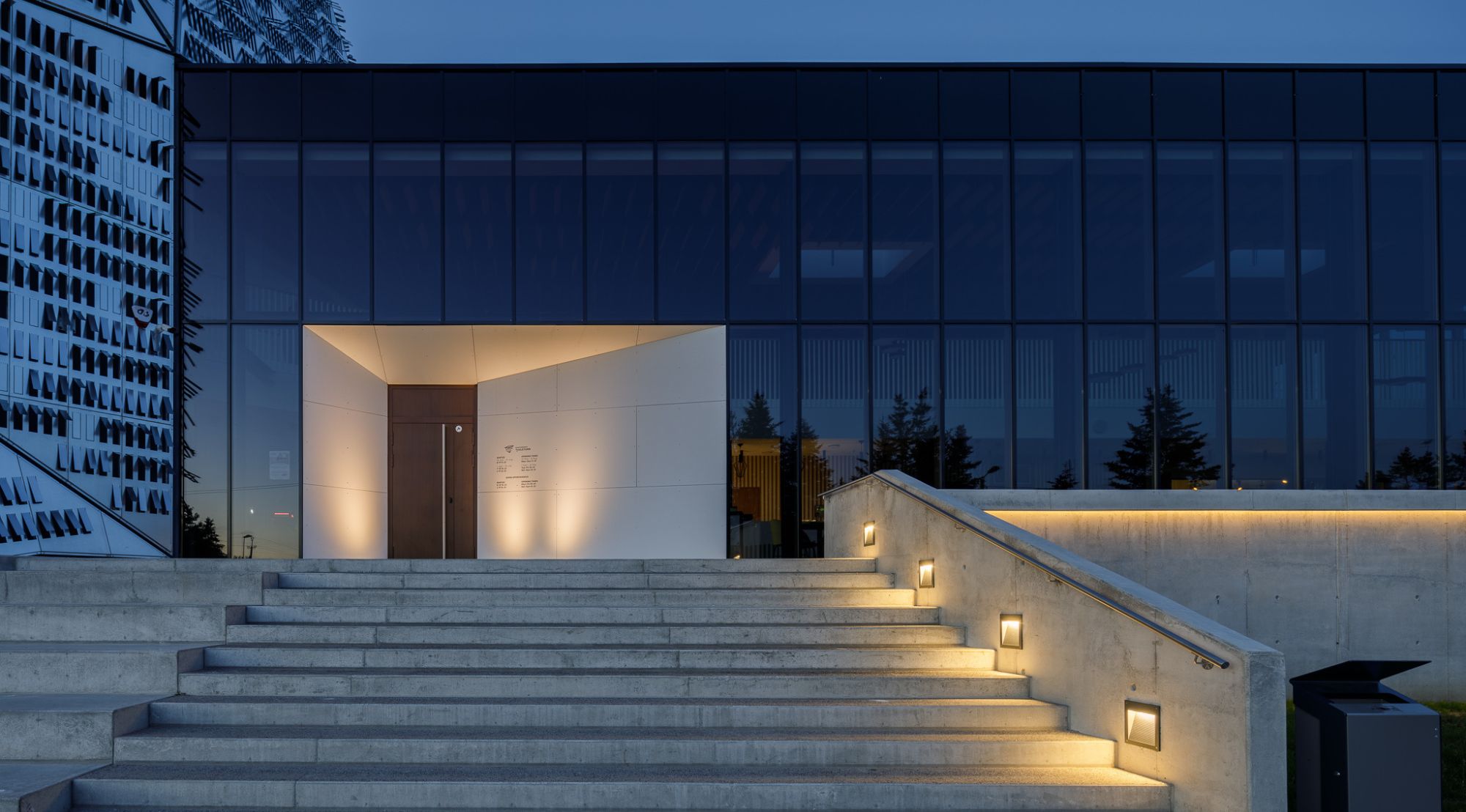 Meie lahendus tugines looduse ja arhitektuuri dialoogi loomisele. Hoone väliskest – tsingitud metalltahvlite perforeeritud muster – muutub tuule ja valguse mõjul pidevalt. Päeval mängib valgus ja vari mustri läbi, õhtul muutub hoone sisemiselt helendavaks majakaks. Fassaad pole lihtsalt kaitsev kest, vaid elav pind, mis hingab koos loodusega.