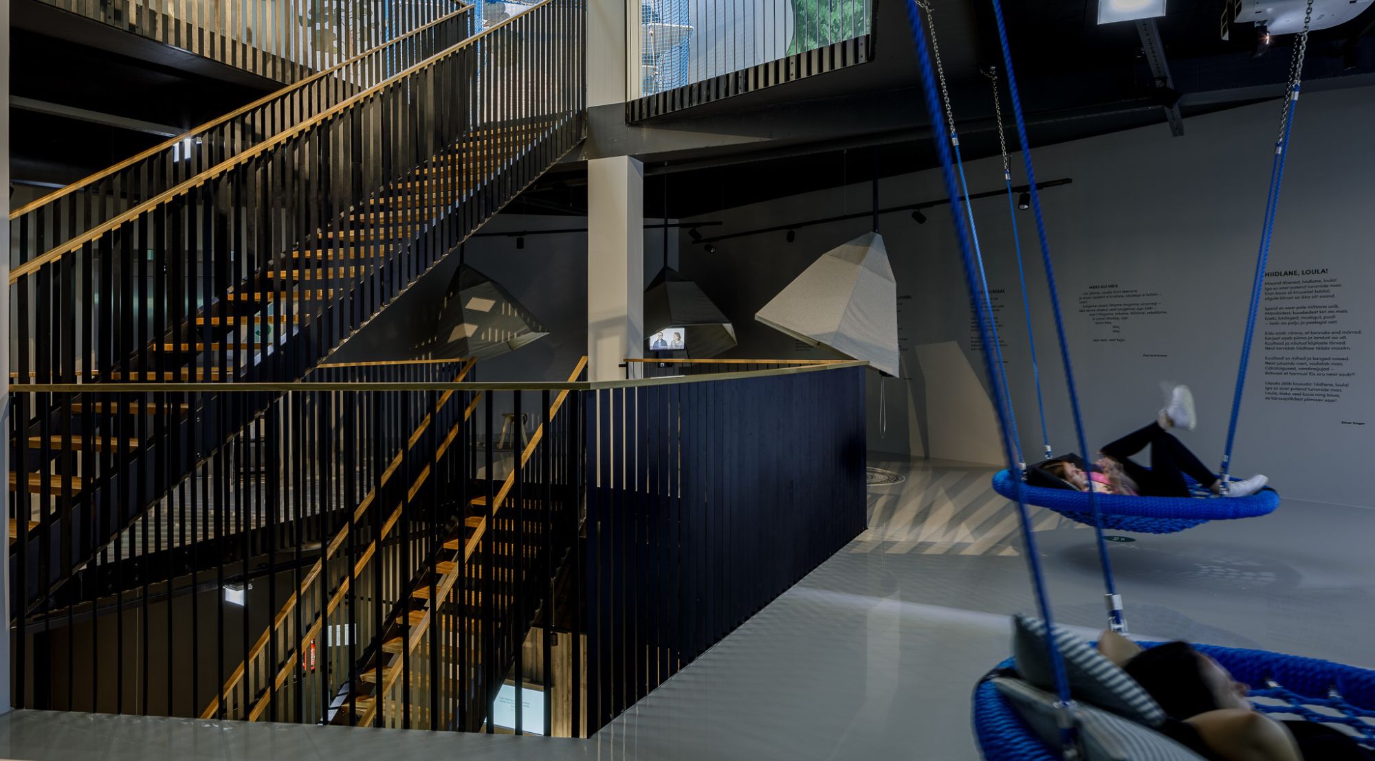 Siseruumides räägib iga detail mere ja tuule loost. Puidu soe faktuur tasakaalustab metallikarkuse jahedust, avatud planeering laseb külastajatel end vabalt liikuda nagu meretuul maastikul. Aknaraamides vahetuvad pildid saare loodusest ja ajaloost, muutes arhitektuuri osaks suuremast narratiivist.