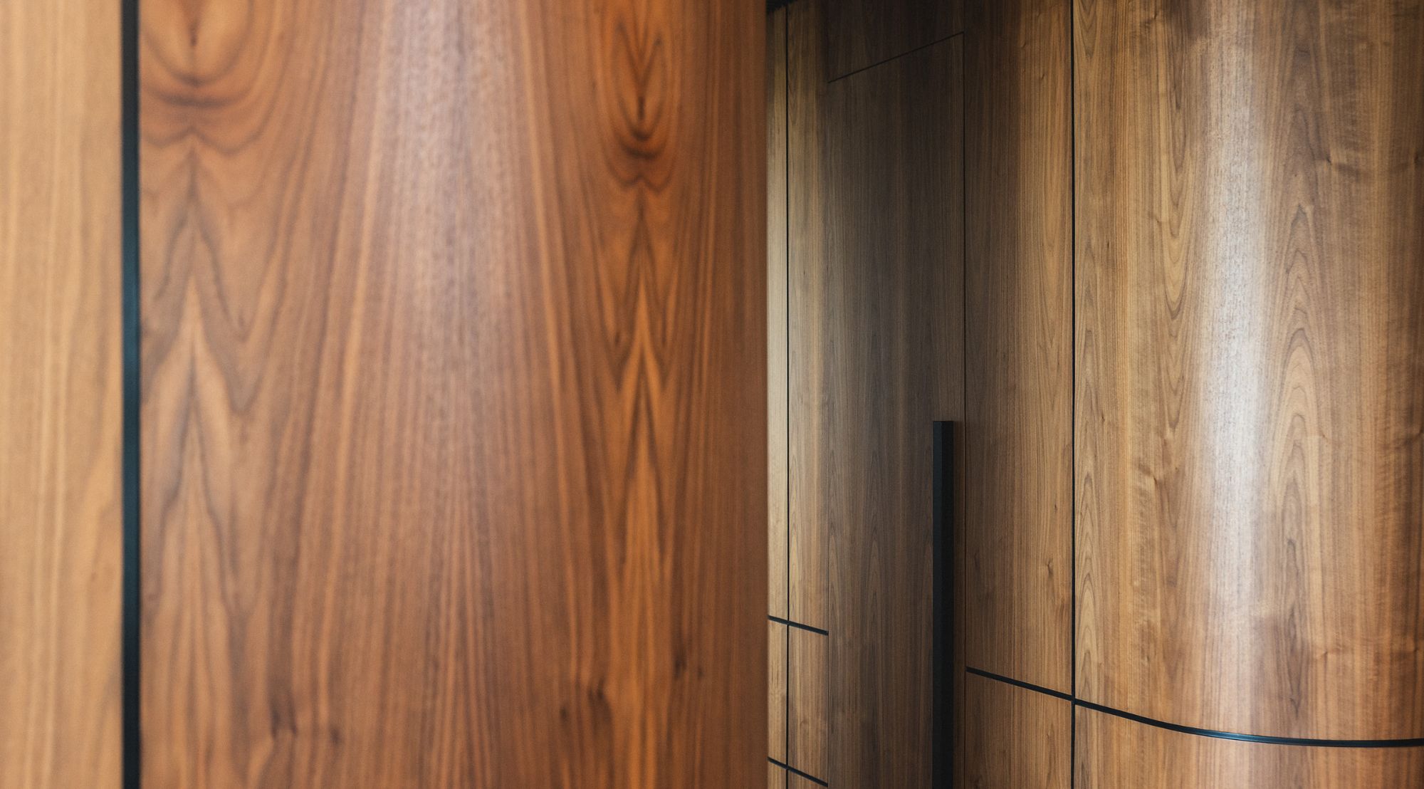 Projekti südameks sai idee ühendada soe puitmaterjalide elegants kaasaegse minimalismi ja tehniliste lahendustega. Ruumis domineerivad must marmor, tammelaudis ja rikkalikult tekstuurne kangas, mis loovad luksuslikku, kuid mitte ülespunutud atmosfääri. Avatud kontoriplaneering jagunes loomulikult erinevateks funktsionaalseks tsoonideks: töötsooni, kohtumisalasid ja esinduslikku vastuvõtukohta. Igal tsooni omab oma karakter, kuid kõik on ühendatud ühtse disainikeelega.