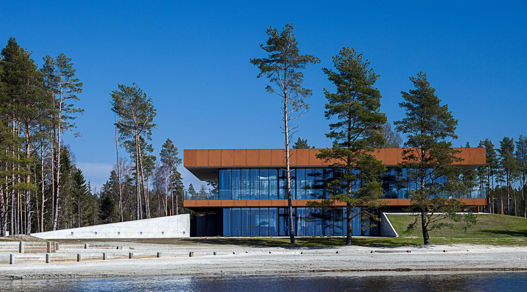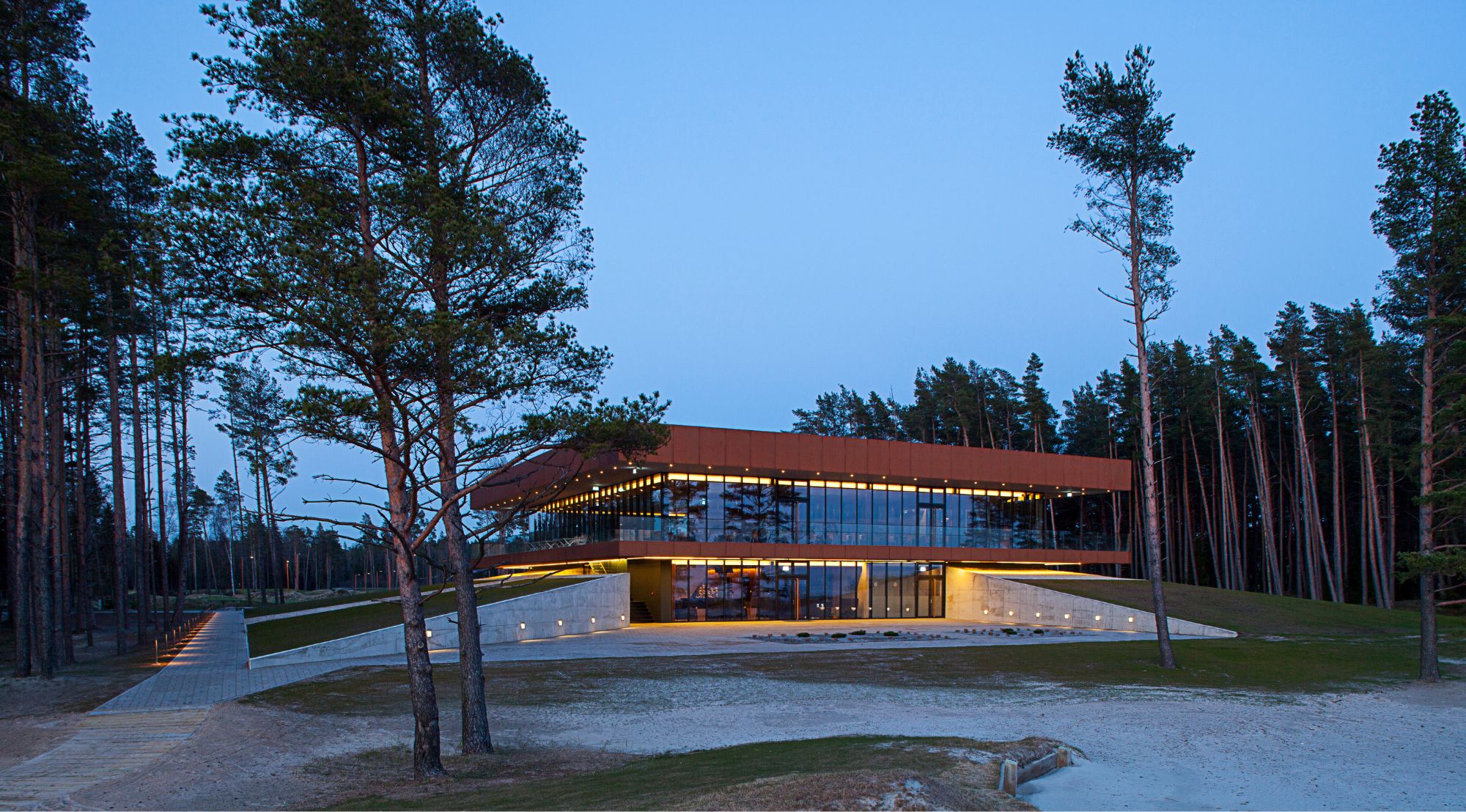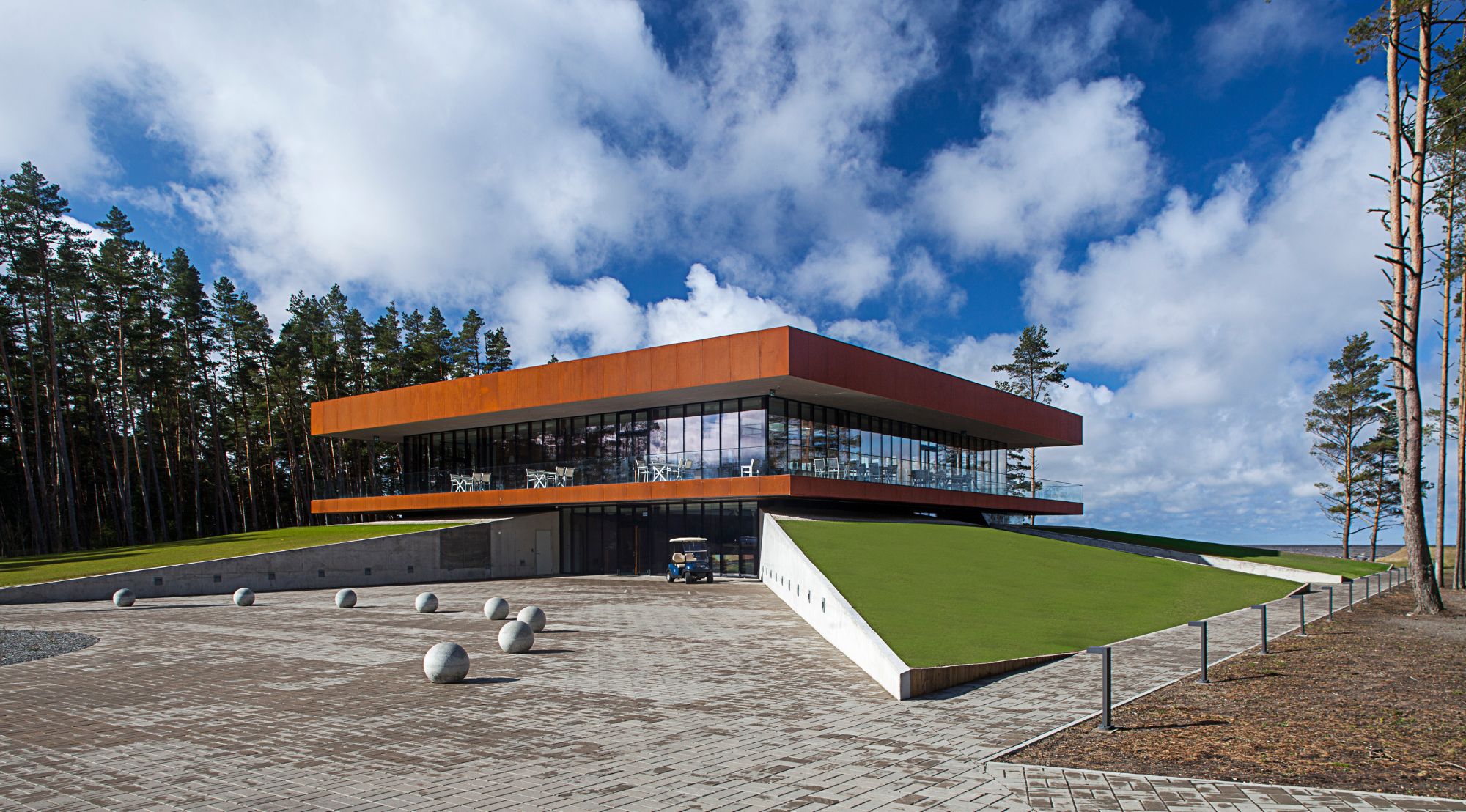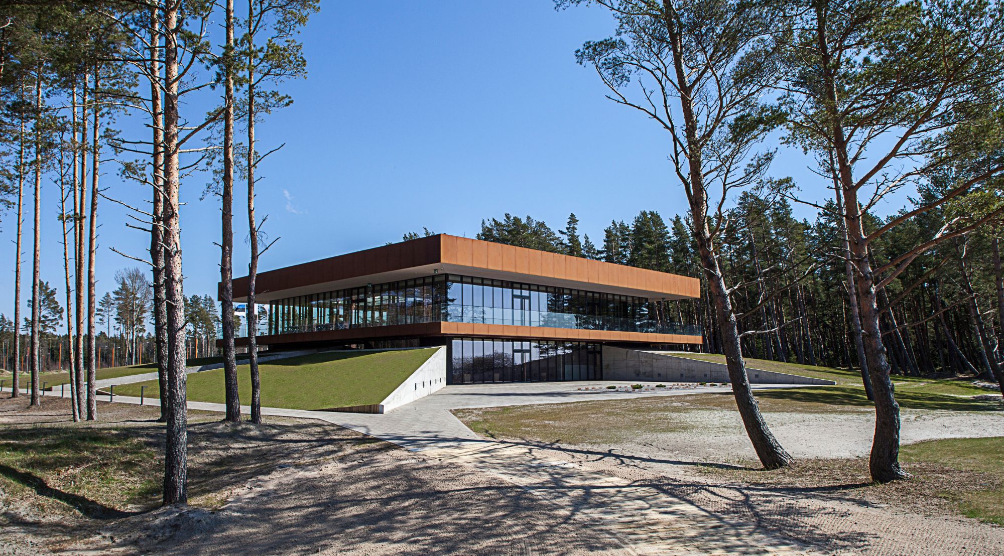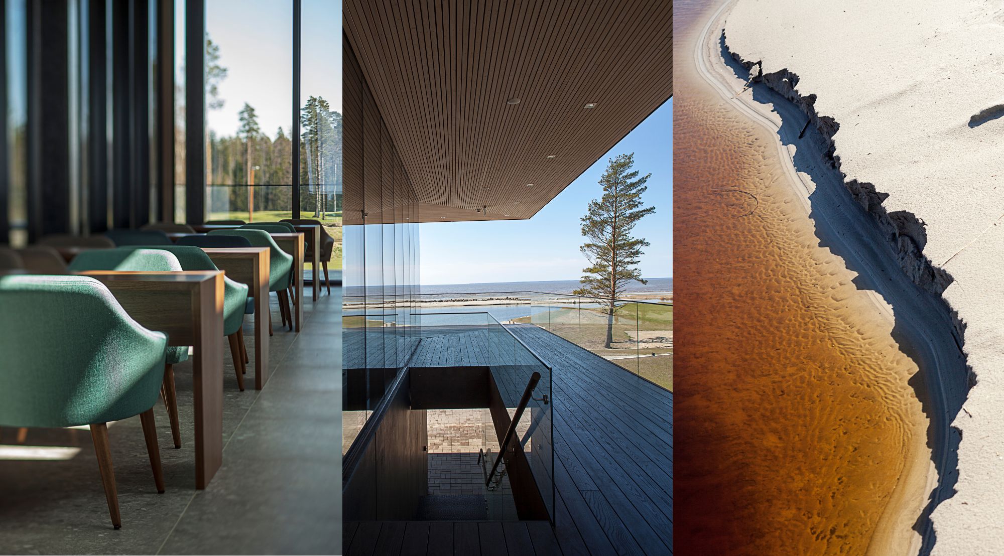 Pärnu lahe ääres, kus mets kohtub merega ja männid vahtivad üle linksiklassi golfiväljaku, seisime väljakutse ees: kuidas luua klubihoone, mis on vääriline Baltikumi esimesele tõelisele linksirajale? Meie ülesanne oli pakkuda golfimängijatele ja külalistele keskuseulatuvat kogemust, mis kätkeb endas nii merevaigustamist kui ka sportliku elegantsi.