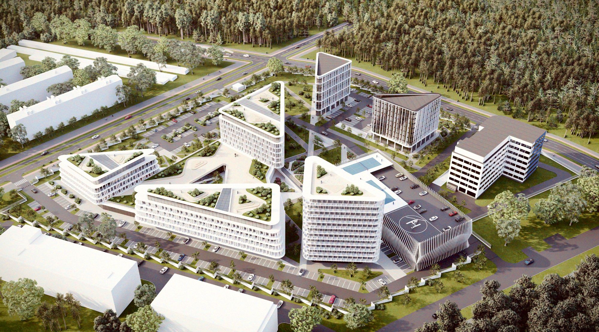 “Kompassi” südameks sai mõte, et turvalisus ei ole isoleeritud ruum, vaid linna orgaaniline osa. Planeeringu keskne geomeetria – kolmnurkne struktuuur – ei ole ainult visuaalne element, vaid funktsionaalne lahendus, mis võimaldab etapiliselt arendada 55 000 m² kompleksi. Säilitades olemasoleva Eesti Kohtuekspertiisi Instituudi hoone ja planeerides uued struktuurid selle ümber, loome dialoogi mineviku ja tuleviku vahel. Tugev ühiskorrus seob erinevad funktsioonid – politseijaoskonna, Põhja Prefektuuri ja PPA peahoone – tervikuks, kus koostöö sünnib juba arhitektuurist endast.