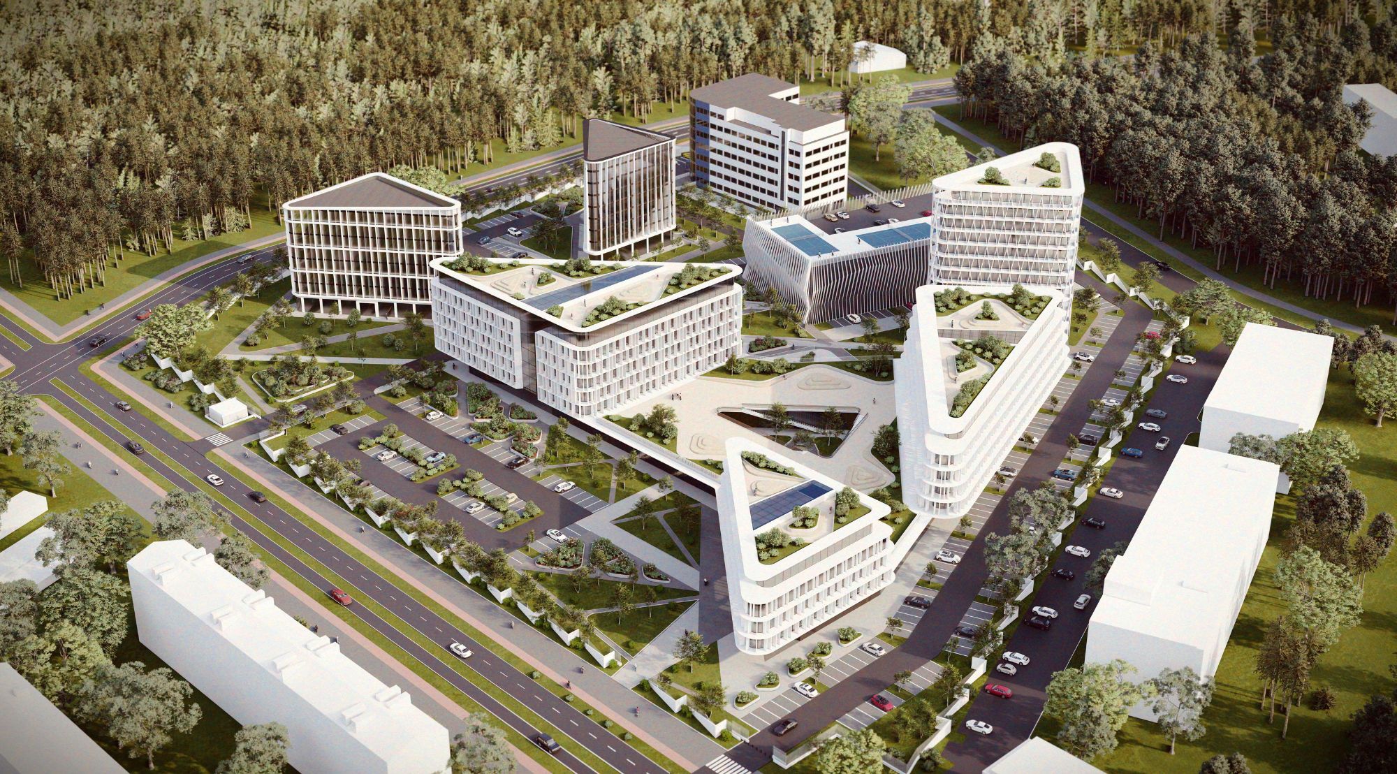 Meie jaoks oli oluline, et “Kompass” ei oleks lihtsalt kontrollpunkt linnas, vaid koht, mis rikastab ümbritsevat keskkonda. Maastikuarhitektuur loob vaatekoridore kõigis suundades, 66% haljastuse osakaal hoiab loodusläheduse ning üle 1000 parkimiskoha tagab funktsionaalsuse. See on arhitektuur, mis näitab suunda – nii ruumiliselt, funktsionaalselt kui ka sotsiaalselt.