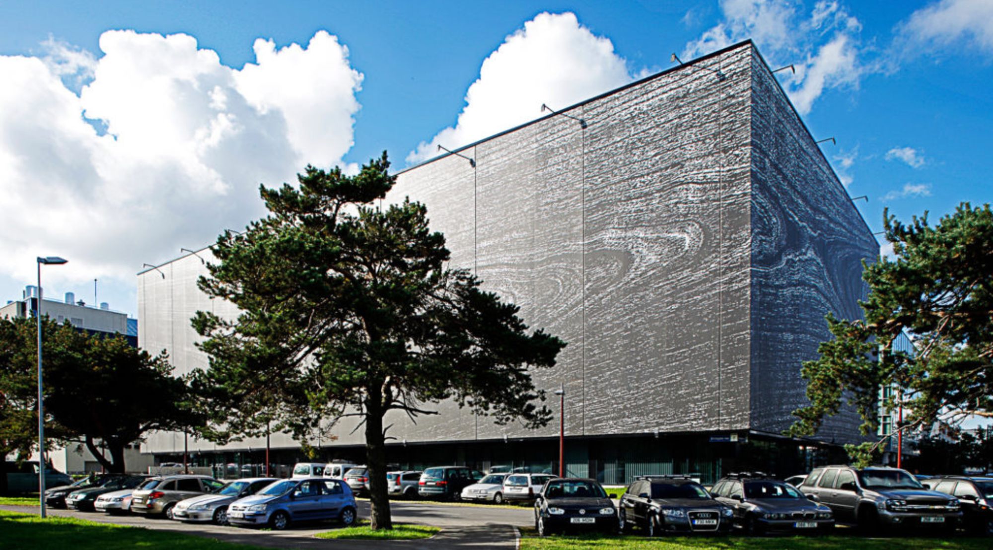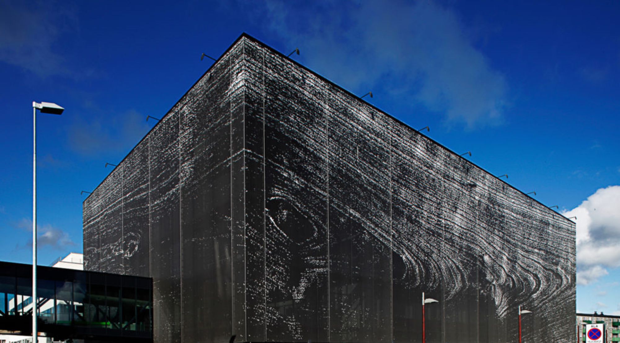 Hoone kõige innovaatilisem element on ilmastikukindla komposiitkangaga kaetud fassaad – teadaolevalt esimene raamatukogu maailmas, kus on kasutatud sellist lahendust. Prantsusmaal toodetud kangale (Ferrari Stamisol) on Eestis trükitud aastaringe moodustav puusüümuster, mis kordub ka raamatukogu sisekujunduses. Fassaadimaterjali valik polnud lihtsalt esteetiline – see lahendab praktiliselt küttekulu vähendamist ja hoone energiatõhusust, luues samal ajal võrratu välisvalgustuse efekti. Õhtul muutub kogu hoone ülikoolilinnaku säravaks pärliks, mis on nähtav kaugelt.