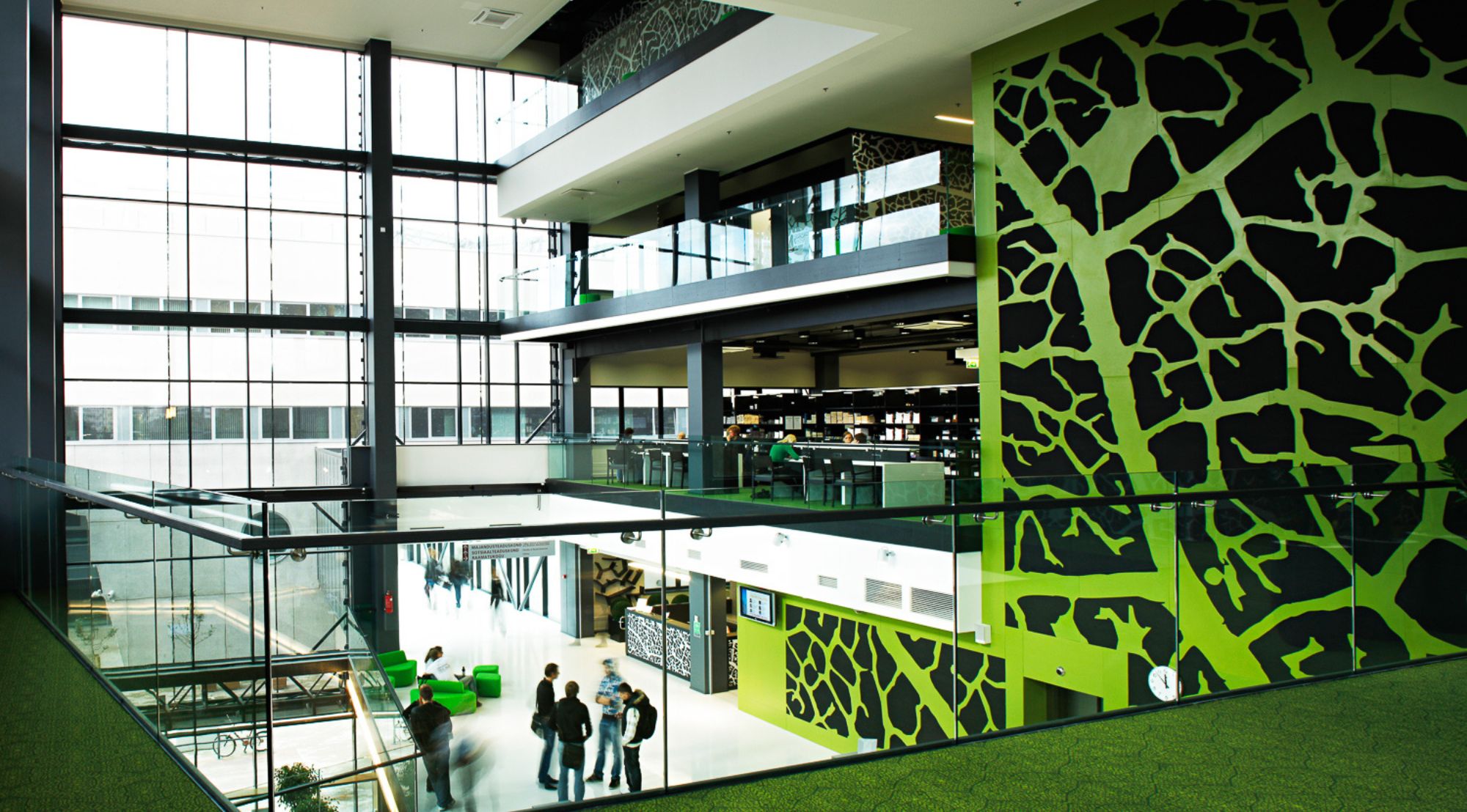 Hoone on läbi 2. korruse galeriide ühendatud nii inseneri- kui ka majandusteaduskonna hoonega. Maa-alusel korrusel paiknevad raamatukogu hoidlad ja parkimiskoht – puu juured, mis toetavad ja toitavad tervet struktuuri.