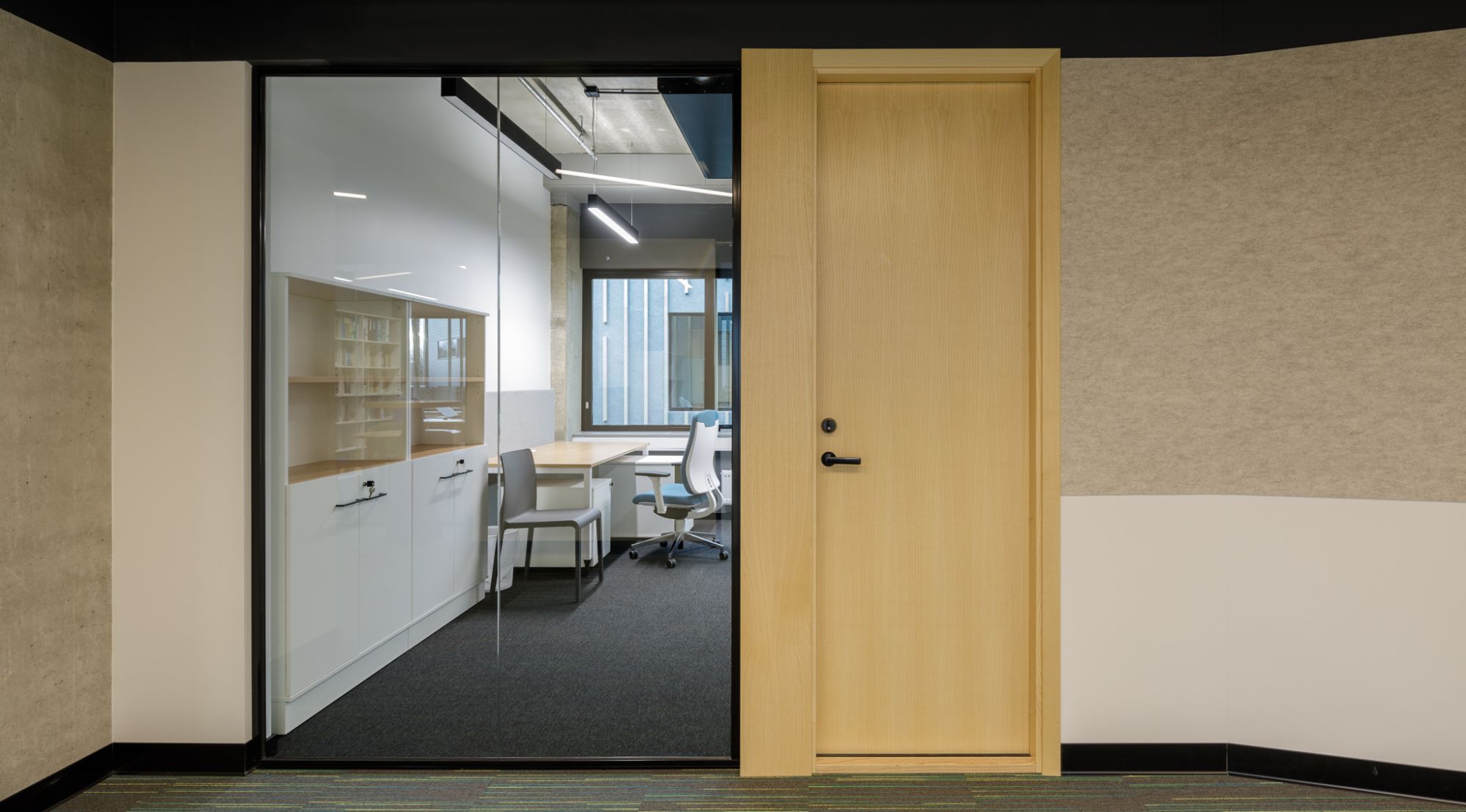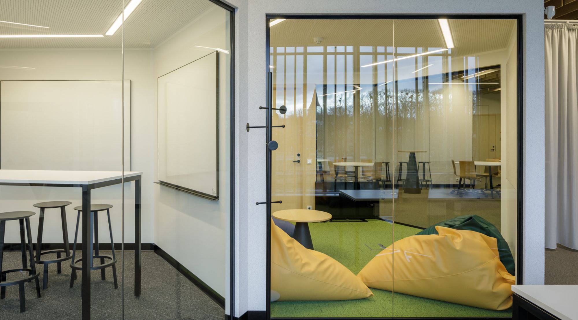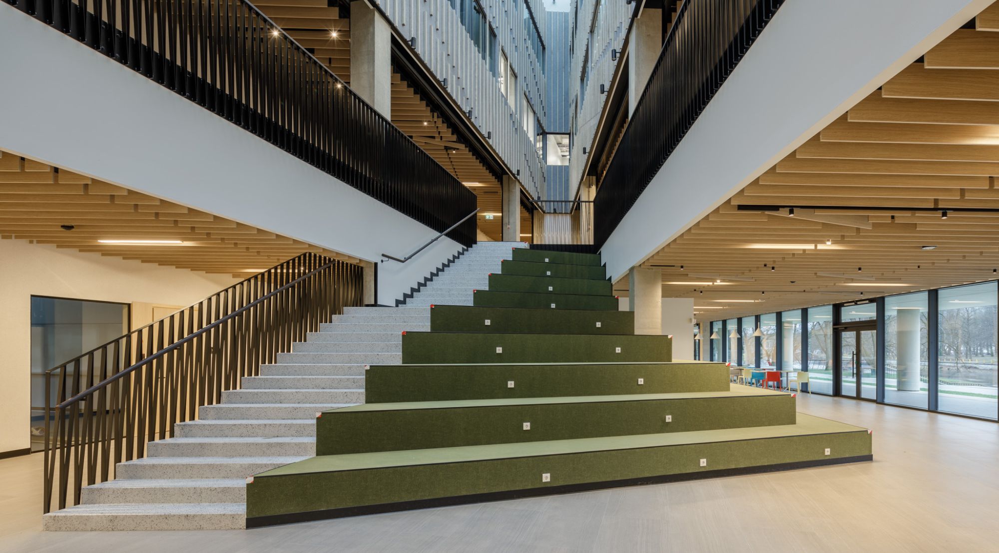 Visuaalselt arendame hele-valget ja sooja puidu monokroomset ruumilahendust, lisades väikeseid tundlikke detaile IT-valdkonnale. Ruumide mõjuks on sooja tooniga kiviplaadid ning trepistik, mille värviaktsendid loovad tudengitele mõeldu istmed ja värvilised toolid.