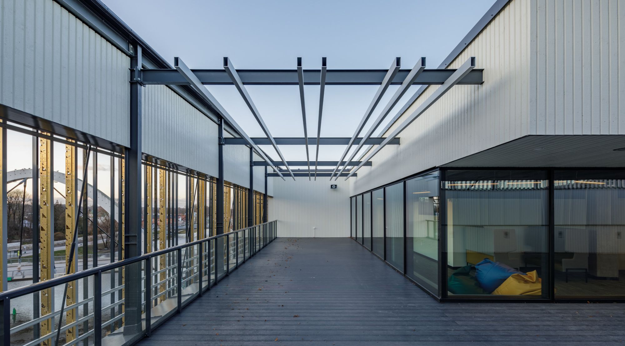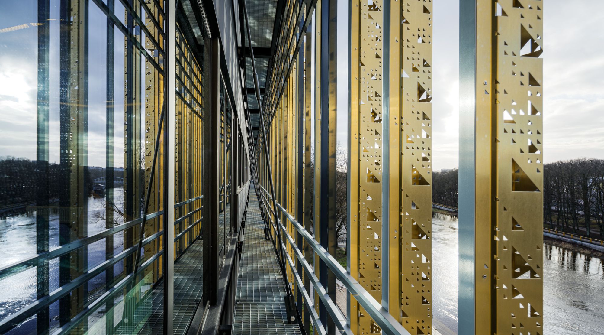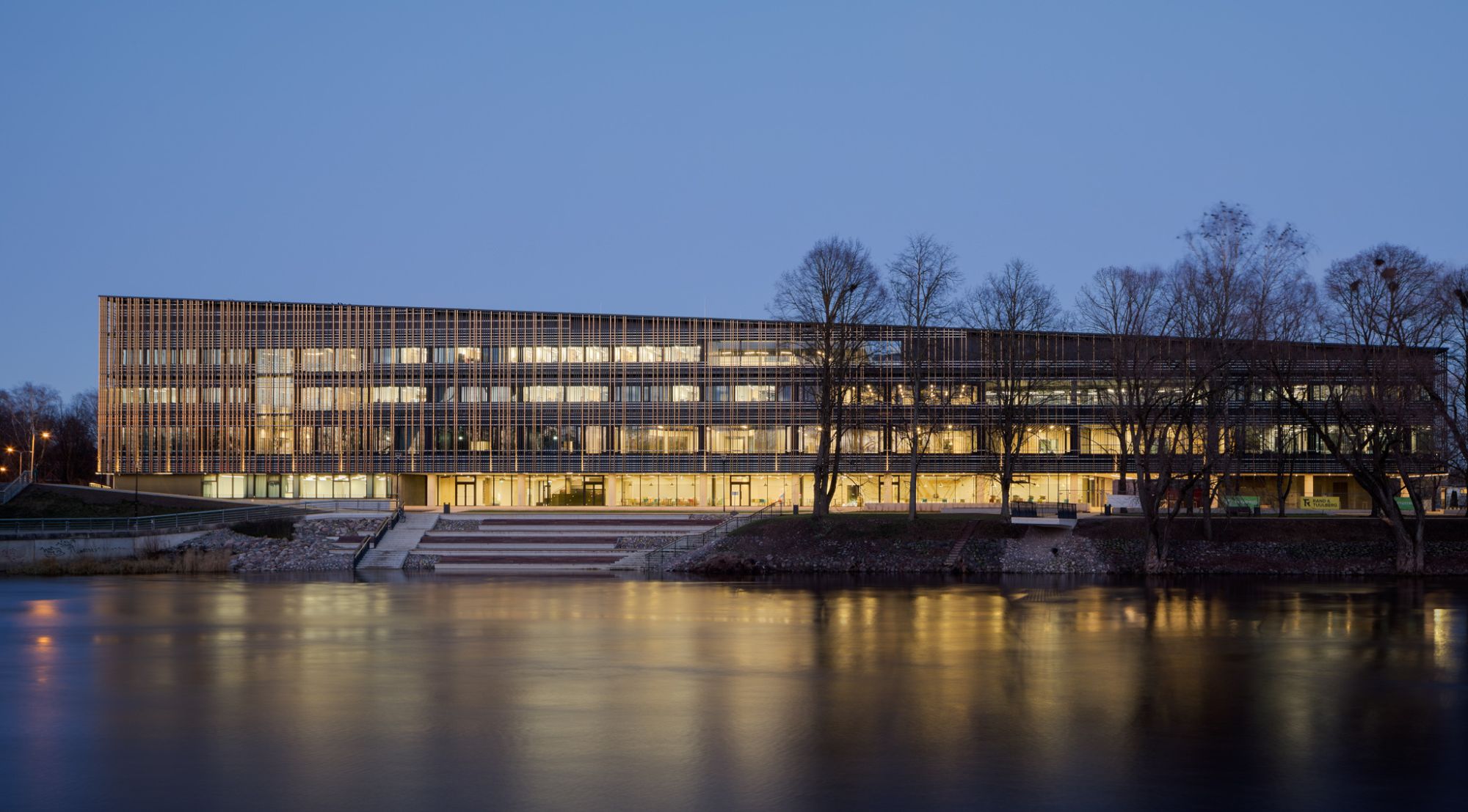 Loomulikuvalgusega perimeeter on seevastu jäetud tööruumide sooniks. Läänehaar suhestub võimalikult rohkem jõega. Seal asuv kohvik avaneb terrassidega jõele ning aatrium pakub vaadet üle jõe Tartu südalinnale.
