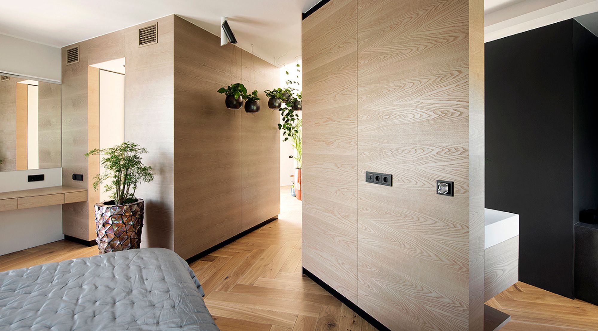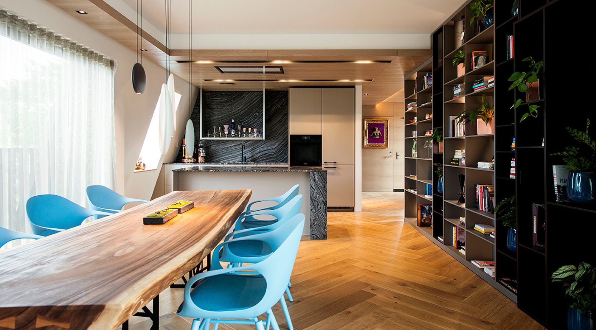 Vana-Kalamaja ajaloolises kvartalis kohtuvad mineviku mälestused tänapäeva vajadusega. Selle korteri puhul seisime väljakutse ees, kuidas luua kaasaegne eluruum, mis austab piirkonna autentset hinge, kuid pakub samas tänapäevase elu mugavusi. Meie lahendus tugines looduslike materjalide ja puhta vormikeele dialoogile. Soe tamm lõi ruumi selgroo, samal ajal kui tumehallid aktsendid andsid sellele vajalikku kaasaegset kontrastsust.