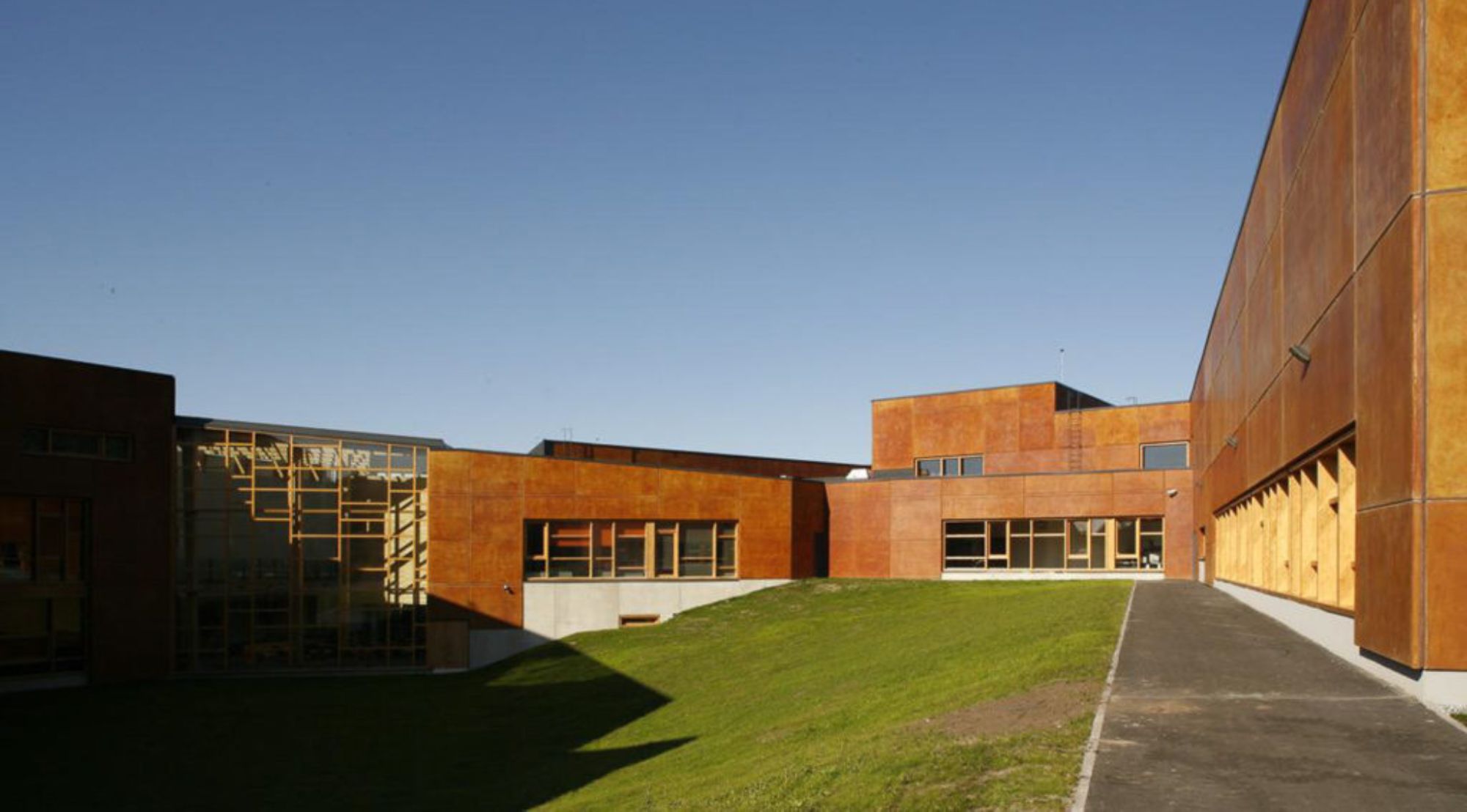 Hoone üks silmatorkavam element on raudkloriidiga töödeldud betoonpindade vaheldumine suurte klaaspindadega. See roostekarva efekt pole lihtsalt dekoratiivne – see räägib loo pidevast muutusest, aja möödumisest ja selle aktsepteerimisest. Materjal vananeb väärikalt, nagu peaks ka haridusasutus – muutudes ajaga huvitavamaks, mitte kulunumaks. Seinapindade erinevad kalded ja vorm annavad hoonele dünaamilise välisilme, mis muutub vaatepunkti järgi. See on arhitektuur, mis keeldub olemas üheselt määratlemast – nagu ei tohikski olla hariduse ruum, mis peab avatuma iga päevaga.
